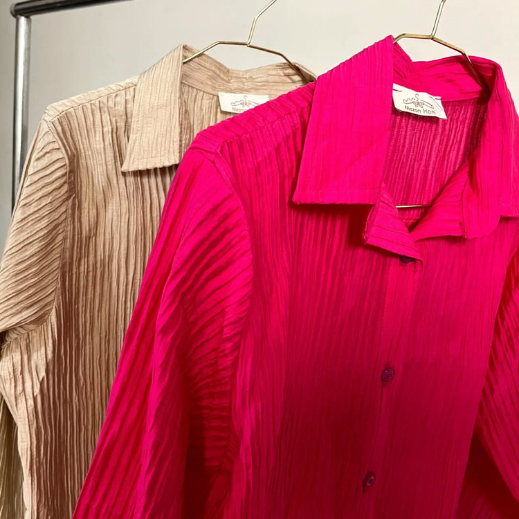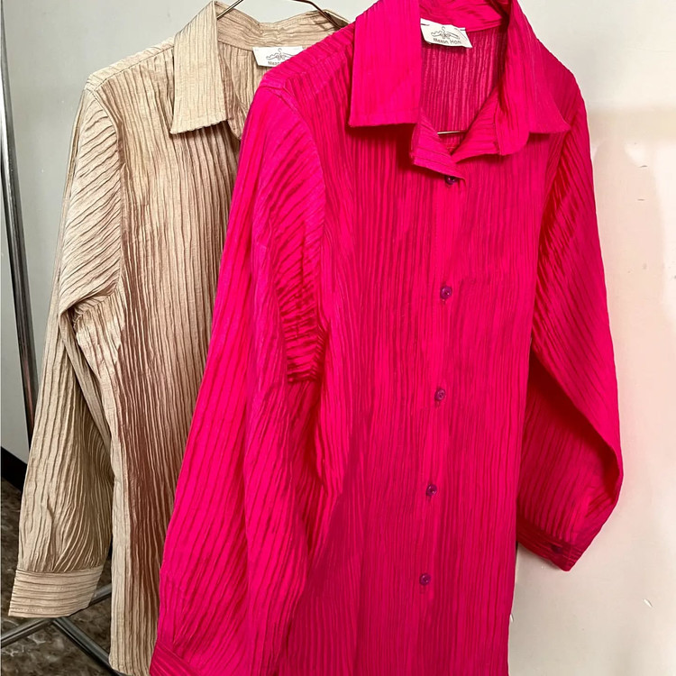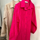دیدن محصولات مرتبطشومیز پلکانی دکمه دار جنس پلیسه پلکانی رنگ بندی سرخابی، کرم سایزبندی: فری سایز تا 46 قد: 76