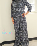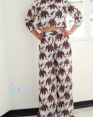 دیدن محصولات مرتبطست فیلی جنس: بافت بيسکوئيتی طرح بندی: فیل سفید، فیل راه راه سایزبندی: فری سایز 46 عرض بلوز: 52 قد بلوز: 50 قد شلوار: 108